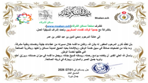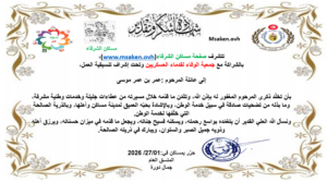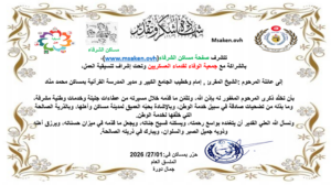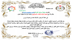 ونُثمن هنا ذرّيته التي امتدت في الخير، ونسأل الله أن يجعلها ذريةً صالحةً مباركة، تحمل من سيرة جدّها وقاره وصدقه ومحبتَه للقرآن وللوطن.